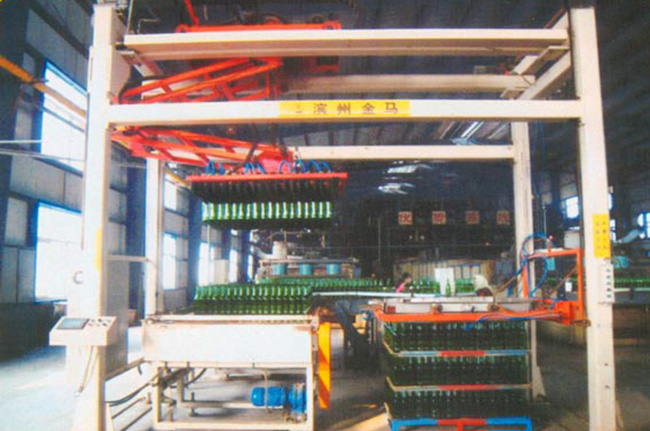 MD1200*1000型夾持式自動碼垛機(jī)廣泛應(yīng)用于長頸玻璃瓶罐的自動碼垛機(jī)包裝,排瓶分自然排瓶和機(jī)械排瓶兩種形式,該機(jī)采用PLC+觸摸屏控制,自動化程度高,操作簡便,可大大減少工人數(shù)量并降低勞動強(qiáng)度。系統(tǒng)采用制動馬達(dá)控制,準(zhǔn)確無誤地按預(yù)先設(shè)定的位置夾瓶和放瓶,采用氣囊夾瓶平穩(wěn)可靠且無人工污染。